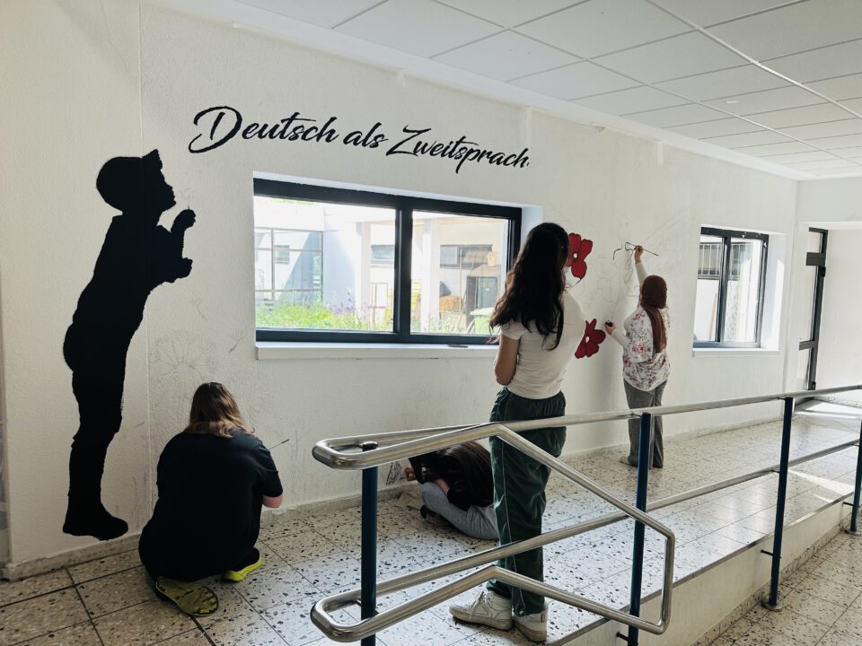 Im Unterrichtsfach „Kulturelle Bildung“ haben Schülerinnen und Schüler der DaZ-Klasse 3 gemeinsam mit Klassenlehrerin Sultana Barakzai und Grafikdesigner Isidro Clave Rodriguez eine Wand in der Schule in ein echtes Kunstwerk verwandelt.