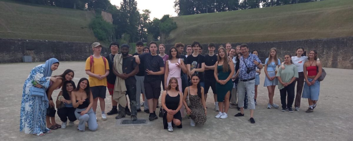Nach dem Ausstellungsbesuch ging es weiter auf Zeitreise durch Trier: Wir staunten über die mächtige Porta Nigra, das besterhaltene Stadttor des Römischen Reichs nördlich der Alpen. Im Amphitheater konnten wir uns gut vorstellen, wie Gladiatoren hier einst kämpften und das Publikum jubelte. Auch ein Spaziergang durch die Kaiserthermen zeigte eindrucksvoll, wie fortschrittlich die Römer in Technik, Architektur und Alltagskultur waren.