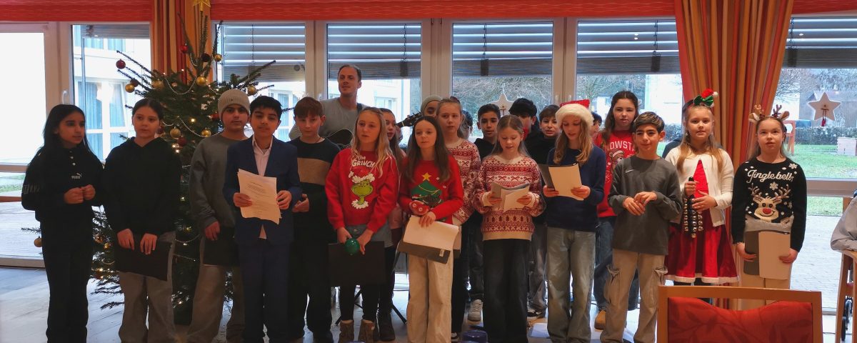 Am 18. Dezember 2025 besuchte die Klasse 5a das Seniorenheim „Haus am grünen Weg“ in Lollar, um dort weihnachtliche Stimmung zu verbreiten. Mit viel Freude und Engagement gestalteten die Schülerinnen und Schüler ein kleines musikalisches Vorweihnachtsprogramm für die Bewohnerinnen und Bewohner.