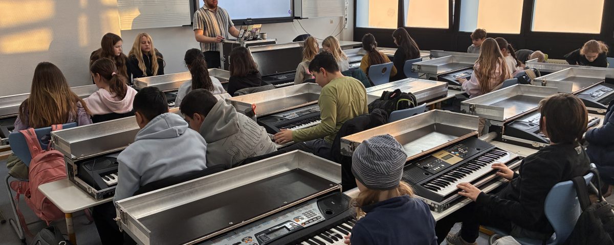 In den verschiedenen Workshops standen ganz unterschiedliche musikalische Schwerpunkte im Mittelpunkt. Im Workshop von Laurin Meiers, dem Leiter der Keyboard-AG, wurde im Keyboardraum fleißig ausprobiert und improvisiert. Hier konnte jeder im freien Musizieren seien Kreativität unter Beweis stellen.